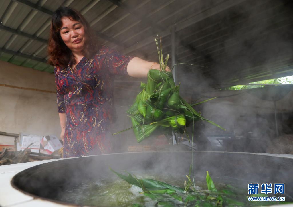 6月2日,貴州省銅仁市玉屏侗族自治縣亞魚鄉(xiāng)郭家灣村村民在煮粽子。新華社發(fā)(胡攀學攝)