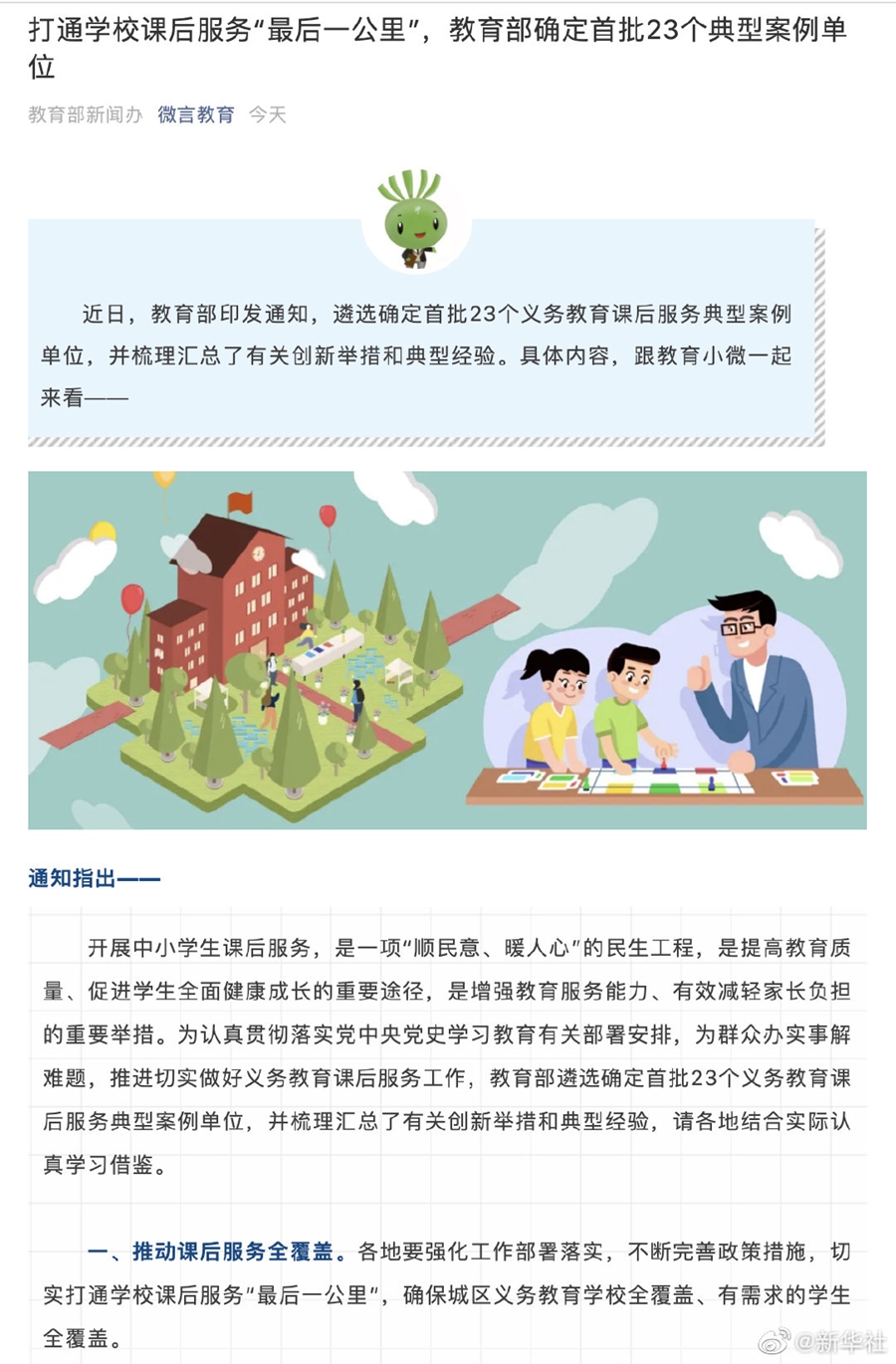 教育部:中小學課后服務結束時間原則上不早于正常下班后半小時