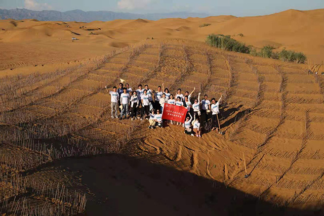 在6年的時間里,劉智卓從十個人的小團隊開始干起,逐漸創(chuàng)立綠格公益團,帶領(lǐng)更多的人在甘肅、內(nèi)蒙等地參與治沙,“交大林”開始在大漠扎根。劉智卓認(rèn)為,“一個人的力量或者一個學(xué)校的力量治理沙漠還是有限的,要發(fā)動越來越多的學(xué)生參與進去,才有可能真正做出一些貢獻。”因而,招募志愿者的范圍也逐漸拓展到更多的高校,并且和浙江大學(xué)、華東師范大學(xué)、四川大學(xué)等高校社團開展合作,帶動更多的人參與到治沙行動當(dāng)中,截至今年,綠格公益團招募的志愿者已經(jīng)超過一千人。