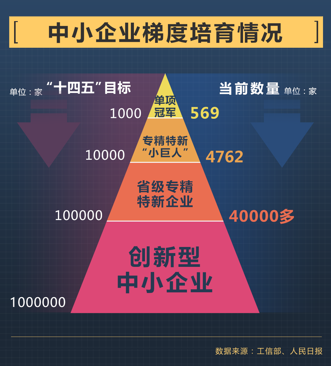 為了強(qiáng)化產(chǎn)業(yè)鏈韌性,工信部正在梯度培育優(yōu)質(zhì)企業(yè)。“十四五”期間,我國將培育1萬家專精特新“小巨人”企業(yè),創(chuàng)新型中小企業(yè)將達(dá)到百萬家。“小巨人”是梯度培育體系中,推動中小企業(yè)由小到大、由大到強(qiáng)、由強(qiáng)變優(yōu)的關(guān)鍵交匯點(diǎn)。