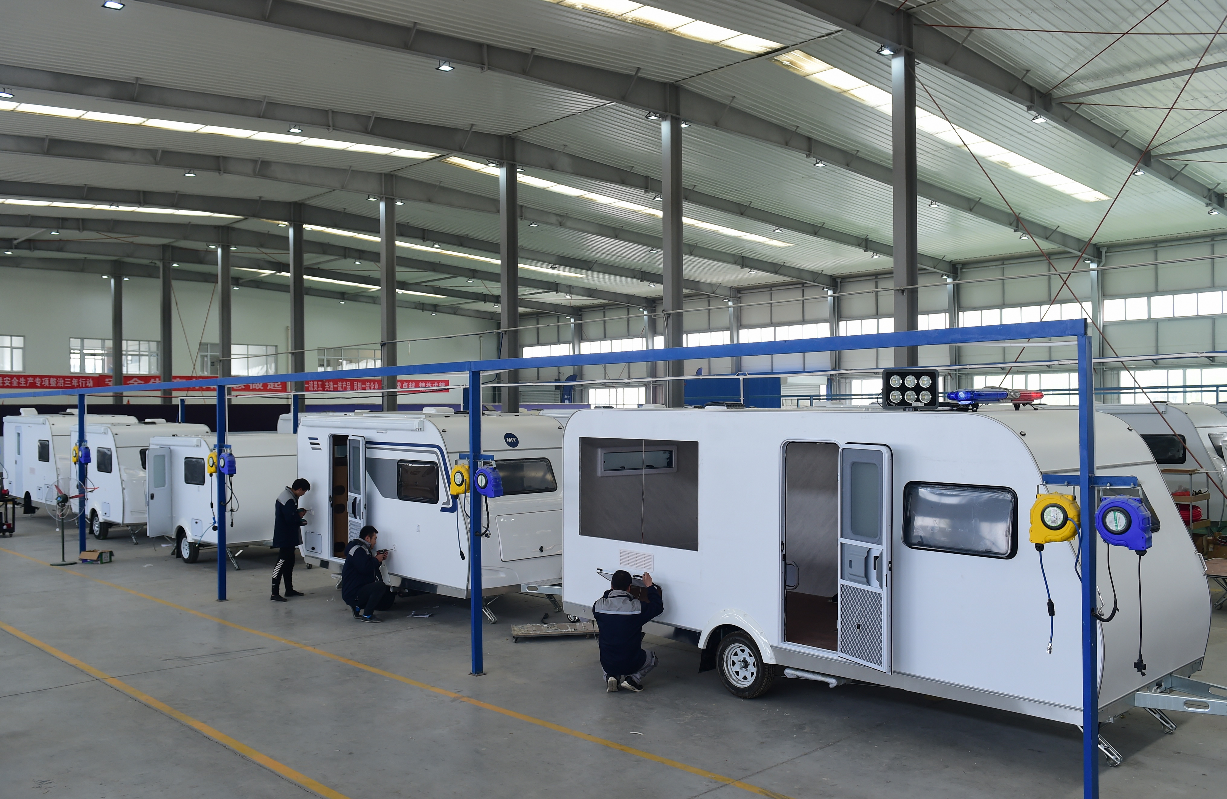 在中國—中東歐(滄州)中小企業(yè)合作區(qū),一家企業(yè)的工人在生產(chǎn)房車。新華社記者 王民 攝
