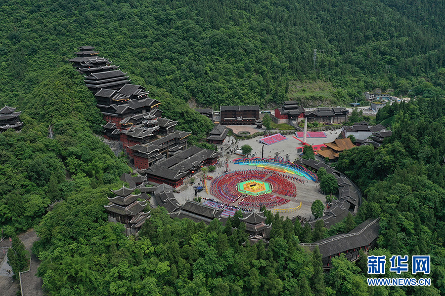 圖為5月18日,在彭水自治縣蚩尤九黎城景區(qū)舉行的“同唱嬌阿依 共舞踩花山”活動現(xiàn)場。每年在彭水舉行的踩花山節(jié)活動中,苗鄉(xiāng)兒女都會身著節(jié)日盛裝,同唱一曲《嬌阿依》。新華網(wǎng)發(fā)(趙勇 攝)
