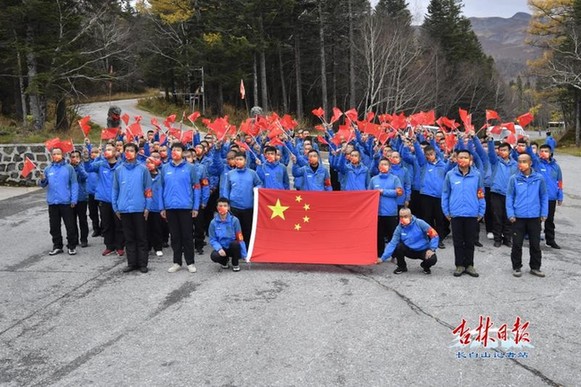 正在天池主峰崗位上默默工作的全國(guó)勞動(dòng)模范吳金明,也在東北最高峰為祖國(guó)母親送上節(jié)日的祝福。他動(dòng)情地說(shuō):“今天是新中國(guó)72周年華誕,我祝福偉大祖國(guó)經(jīng)濟(jì)更繁榮、人民更幸福、國(guó)力更富強(qiáng)。”