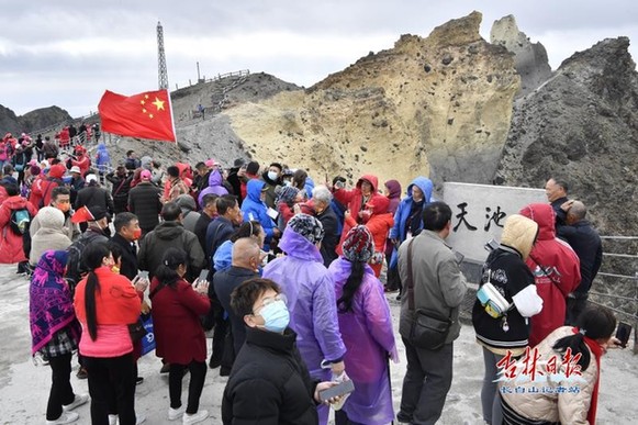 7時(shí)50分,記者來(lái)到天池主峰,在此堅(jiān)守的26名景區(qū)員工在一池碧水的天池觀景臺(tái),異口同聲地為祖國(guó)送上生日的祝福“祝福祖國(guó)之樹(shù)萬(wàn)古長(zhǎng)青,祖國(guó)之花永不凋謝,祖國(guó)之水萬(wàn)古流長(zhǎng),祖國(guó)繁榮昌盛!”隨后,峰巒疊嶂的天池主峰迎來(lái)國(guó)慶假期第一批廣東客人,他們興奮地與天池合影留念,將長(zhǎng)白山美景通過(guò)視頻和照片分享給遠(yuǎn)方的朋友。面對(duì)神秘的天池發(fā)出陣陣感慨“哇,我好幸運(yùn),看到天池啦!”“天池真美,不虛此行!”“空氣真清新,有幸福的味道......”一句句真情流露,詮釋著游客們此時(shí)此刻的心情。
