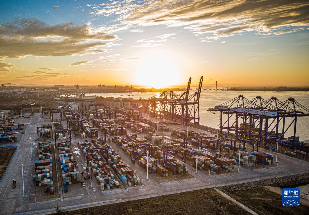 這是5月26日在海南洋浦經(jīng)濟(jì)開發(fā)區(qū)拍攝的洋浦國際集裝箱碼頭(無人機照片)。新華社記者 蒲曉旭 攝