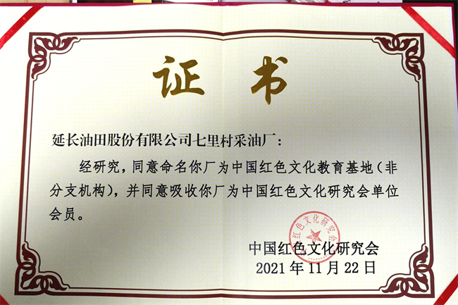 西部決策網(wǎng)訊(記者張靜 通訊員 劉亞萍)日前,延長石油七里村采油廠被中國紅色文化研究會(huì)命名為中國紅色文化教育基地,并授牌和頒發(fā)了證書。