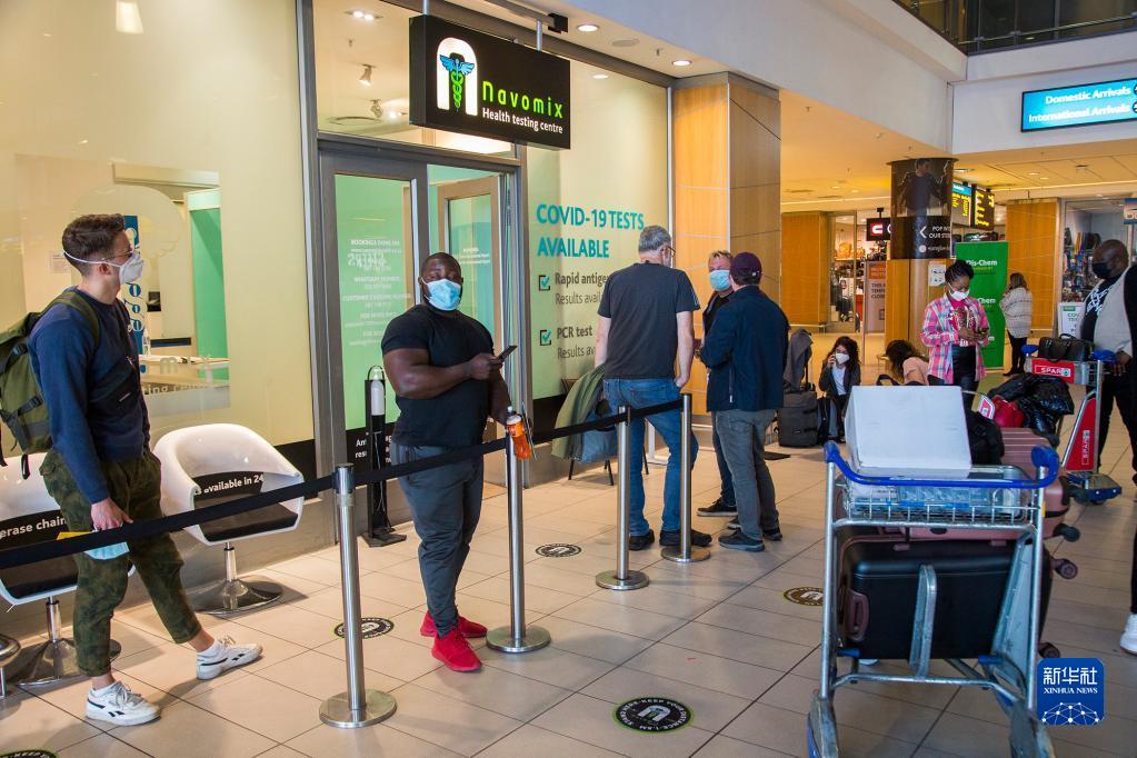 旅客在南非開普敦國際機場等待接受新冠病毒檢測(2021年11月29日攝)。為防范新冠變異病毒奧密克戎毒株傳播,多國對南非等非洲國家的航班和旅客實施入境限制,并升級防控措施。新華社發(fā)(弗克攝)