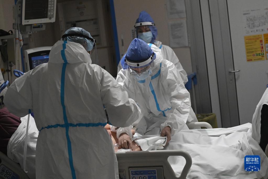 醫(yī)務(wù)人員在意大利博洛尼亞一家醫(yī)院的新冠隔離區(qū)對患者進行治療(2021年12月3日)。新華社發(fā)(賈尼·斯基基攝)