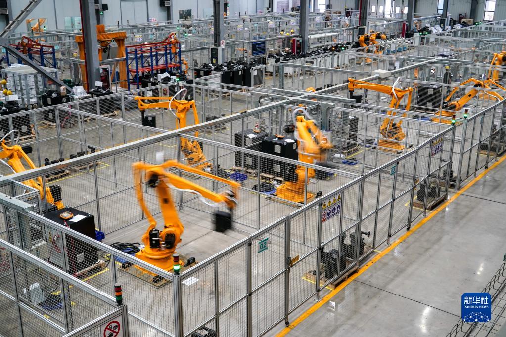 在位于江蘇省南京市江寧區(qū)的南京埃斯頓自動化股份有限公司工業(yè)機器人生產(chǎn)車間,工業(yè)機器人在進行跑合測試(7月1日攝)。新華社記者 李博 攝