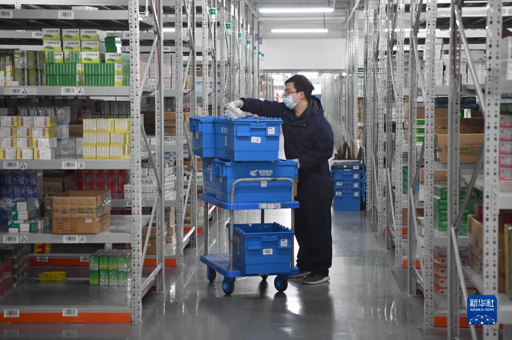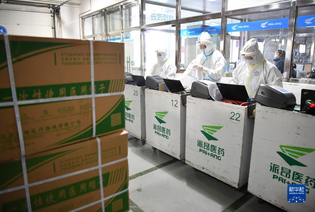 12月28日,陜藥集團(tuán)派昂醫(yī)藥公司工作人員準(zhǔn)備對(duì)藥品進(jìn)行派送。新華社記者 邵瑞 攝