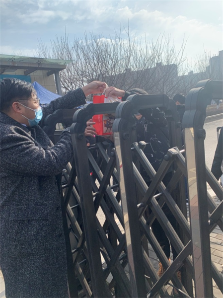 南校區(qū)家屬區(qū)開(kāi)始封閉管理,一些租住在家屬院的已退宿延期畢業(yè)學(xué)生由于不會(huì)做飯,就餐成了難題,于是,輔導(dǎo)員楊笑宇化身“外賣(mài)小哥”,前往食堂、超市、面包店采購(gòu)一大包食品和生活用品,透過(guò)家屬區(qū)的大門(mén)交到學(xué)生手中,解決了學(xué)生的溫飽難題。