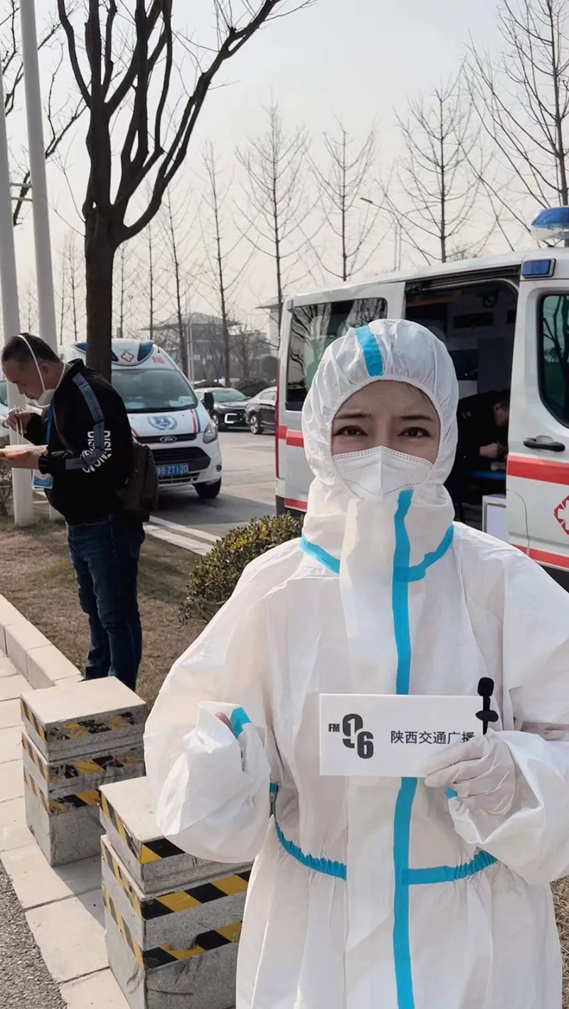 2022年1月3日,陜西廣播電視臺記者范雪在抗疫支援車輛調(diào)度指揮部采訪。