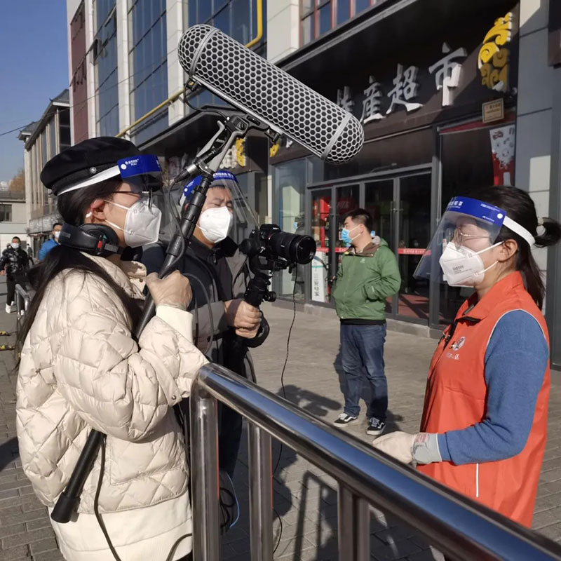 2021年12月21日,陜西日報社記者齊卉(左)在采訪參與一線防疫的志愿者。