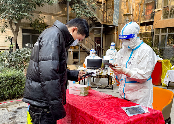 西安爆發(fā)本輪疫情,母親又一次主動站了出來,她說:“我是一名老共產(chǎn)黨員,現(xiàn)在國家需要我,我義不容辭,能為國家做貢獻,我感覺到非常開心!”從2021年12月19日起,陳晶晶和妻子在母親的感召下參與了社區(qū)志愿工作,服務于每輪核酸檢測現(xiàn)場。陳晶晶說:“我們每天忙碌著,看著這個城市一天天好起來,心里踏實。”