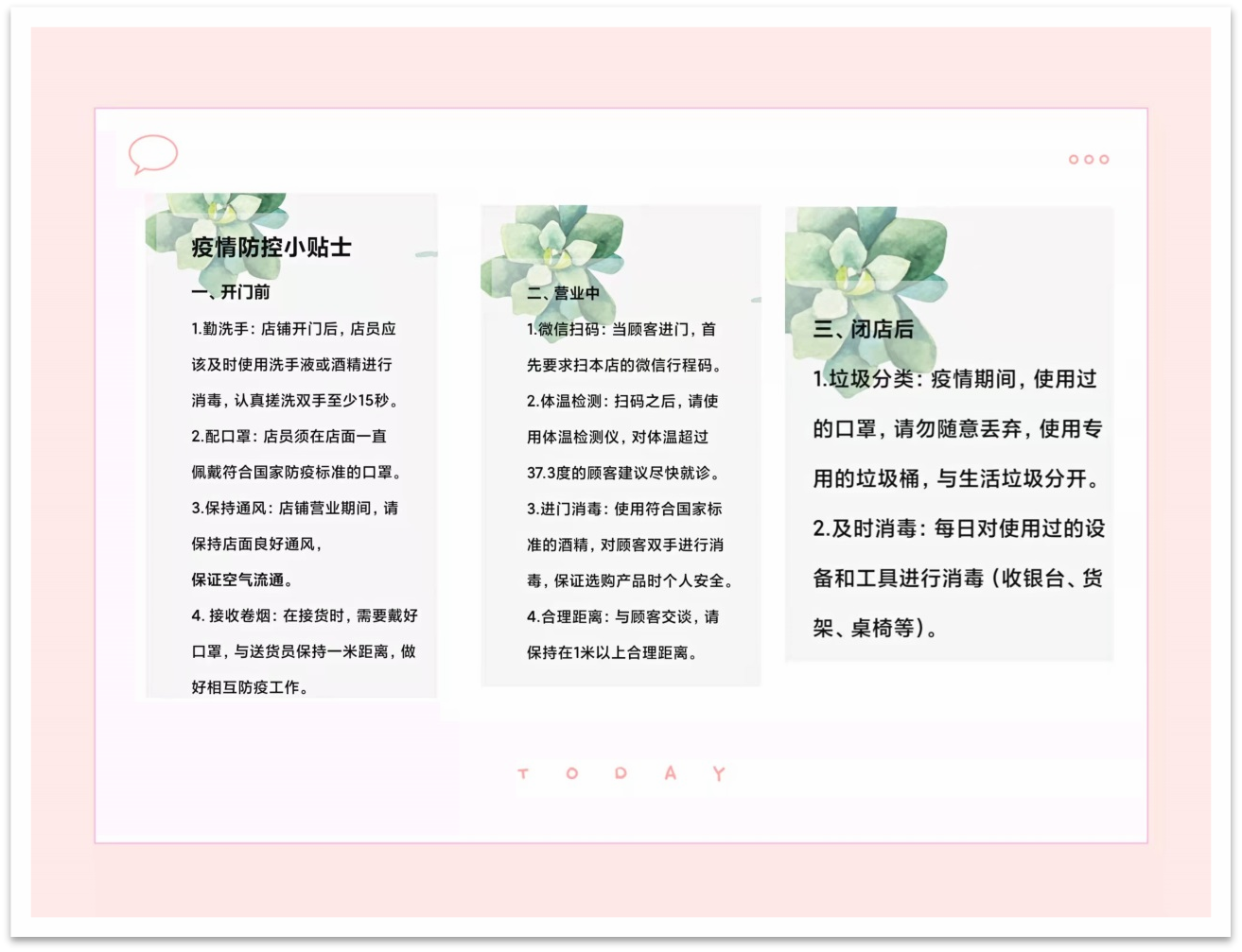 而近期面對日益嚴峻的疫情防控形勢,正常營業(yè)的店鋪如何進行防疫工作成了重中之重,對此,客戶經理高飛制作了提醒服務小貼士對卷煙零售客戶進行防疫宣傳工作。