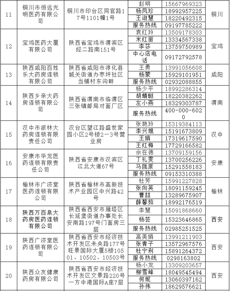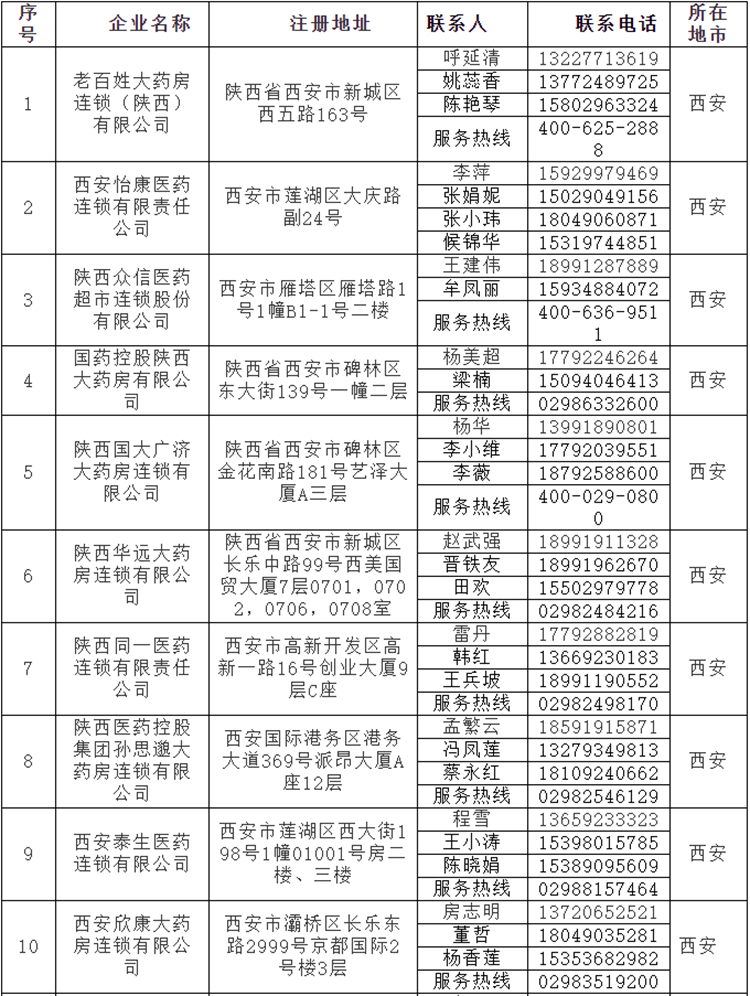 陜西省藥監(jiān)局公布全省31家藥品零售連鎖總部名單及聯(lián)系方式