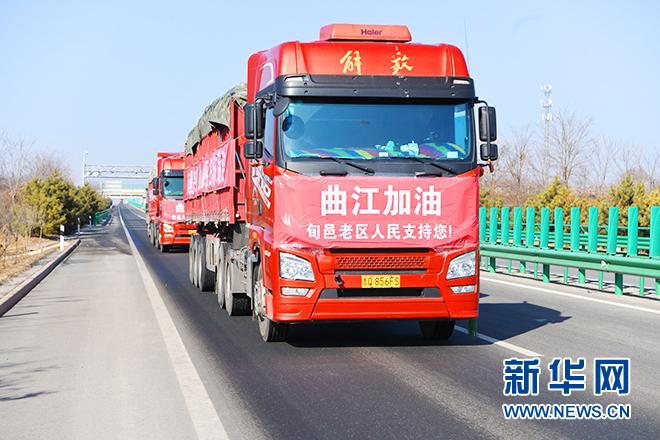 滿(mǎn)載旬邑生活保障物資的車(chē)隊(duì)直奔西安曲江