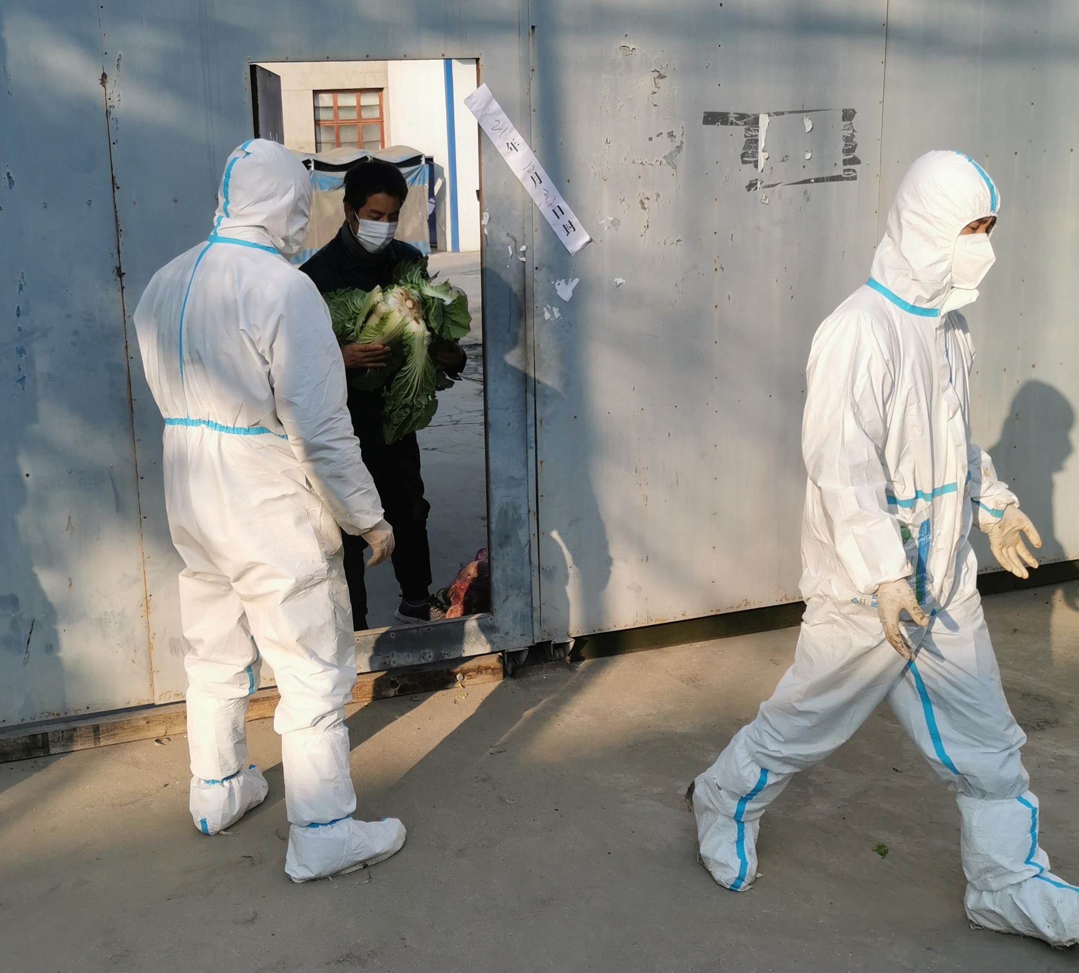 南小張村疫情防控指揮部工作人員為村民運送物資。(照片由受訪對象提供)
