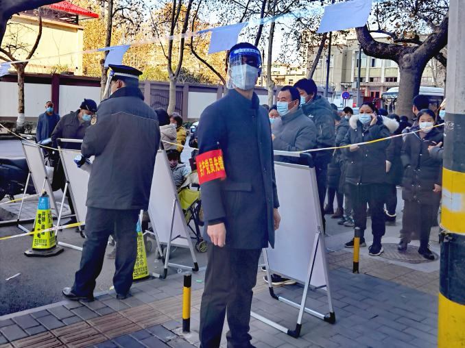 自從12月21日至今,王曉軍幾乎天天深入抗疫一線(xiàn),以志愿者的身份助力抗疫,從未休息過(guò)一天,什么工作都干過(guò),上門(mén)核實(shí)業(yè)主家里的人員情況,最近是否都做了核酸,綠碼顯示情況,是否還出去上班,是否有生活困難等等一系列繁瑣細(xì)微的工作,作為總經(jīng)理他在公司運(yùn)籌帷幄,雷厲風(fēng)行,而在這里,他俯首甘為孺子牛,輕輕地敲開(kāi)萬(wàn)戶(hù)門(mén),耐心詢(xún)問(wèn),認(rèn)真登記,毫無(wú)差漏。小區(qū)巡查時(shí),勸導(dǎo)業(yè)主回家不要下樓,遇到家里有生活方面困難的業(yè)主時(shí),了解情況后勸導(dǎo)回家等侯,然后聯(lián)系物業(yè)或社區(qū)或民警協(xié)調(diào)處理,給業(yè)主回復(fù)。小區(qū)門(mén)口值班時(shí),對(duì)進(jìn)出人員嚴(yán)加詢(xún)問(wèn),除防疫工作人員及民生保障人員持身份證、單位證明、疫情防控指揮部辦公室的證明人員外,一律不許出入,對(duì)門(mén)口交接生活保障物資的人員,通過(guò)專(zhuān)用通道,保持3米距離,并對(duì)物品進(jìn)行嚴(yán)格酒精消殺,杜絕出現(xiàn)交叉感染。核酸篩查現(xiàn)場(chǎng)維護(hù)秩序時(shí),看到年邁的老者,就主動(dòng)向前扶一把,幫助老人提前插隊(duì)做;遇到打不開(kāi)綠碼的,就親自幫人操作;遇到間距拉近的就讓他們分開(kāi)......一天下來(lái)嗓子都喊啞了,從21日開(kāi)始至今,一共進(jìn)行了10輪核酸篩查,他從未缺崗。防護(hù)服不透氣,身上一會(huì)兒熱一會(huì)兒冷,自己本來(lái)就戴著一副眼鏡,再加上一個(gè)面罩,外寒內(nèi)熱,眼睛一整天都是模糊的,一天下來(lái)腰酸背痛,何況天天如此。在數(shù)九寒天,在危險(xiǎn)面前如果沒(méi)有一種精神力量做支撐,普通人恐怕一天也難以堅(jiān)持。我也做過(guò)志愿者,穿過(guò)傳說(shuō)中的防護(hù)服,僅僅五個(gè)小時(shí)我都快崩潰了,幸好工作結(jié)束,否則我可能要請(qǐng)假了,所以我感同身受志愿者的艱辛和不易。