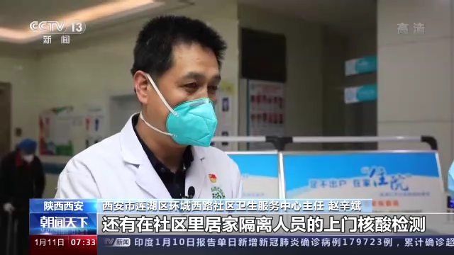 西安市蓮湖區(qū)環(huán)城西路社區(qū)衛(wèi)生服務(wù)中心主任 趙辛斌:有全面核酸檢測(cè),有隔離酒店,還有在社區(qū)里居家隔離人員的上門核酸檢測(cè),還有這些人的日常健康監(jiān)測(cè),還有出現(xiàn)一些其他的,比如說(shuō)有管控區(qū)的話,我們還要去消殺,或者社區(qū)日常消殺的指導(dǎo),還有一些轄區(qū)群眾的送醫(yī)送藥。