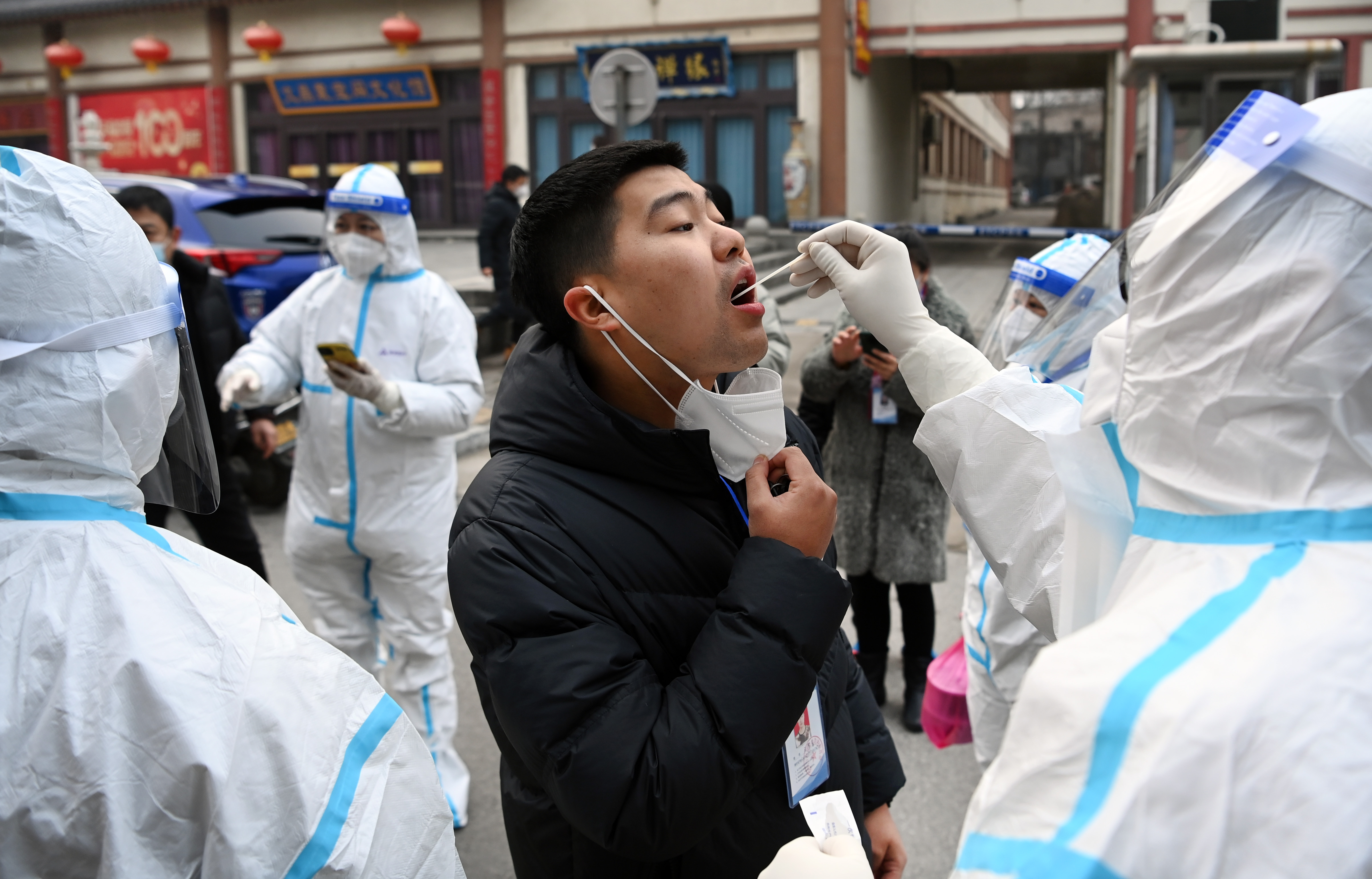 1月10日,西安市碑林區(qū)三學街社區(qū)“流動核酸檢測組”為居民做核酸檢測。新華社記者 陶明 攝
