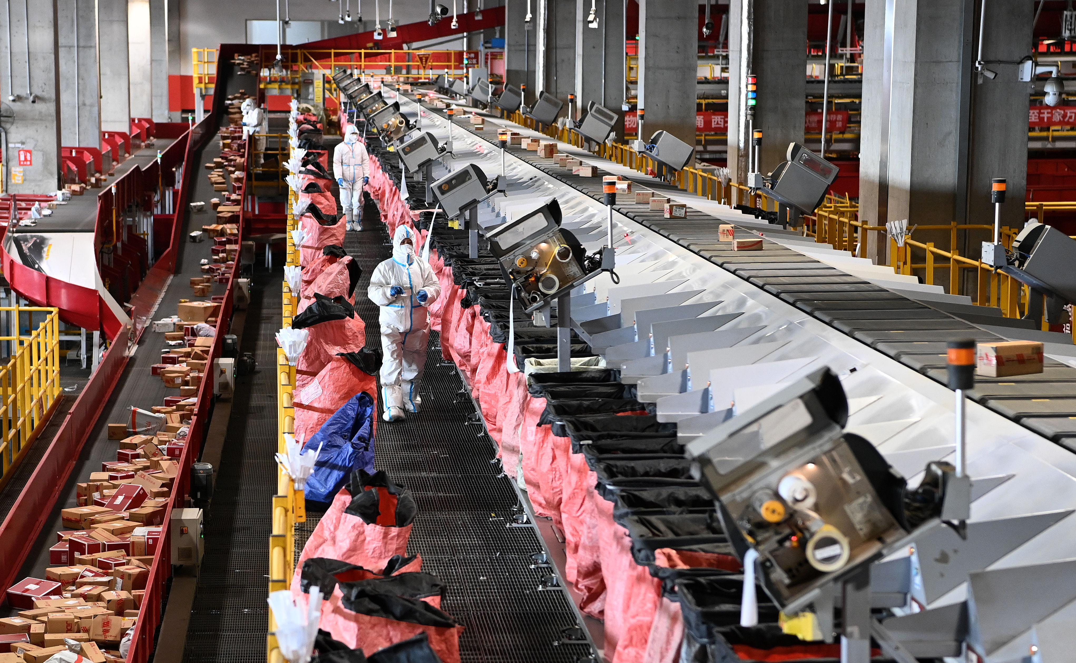 1月13日,在位于西安國(guó)際港務(wù)區(qū)的京東“亞洲一號(hào)”園區(qū)內(nèi),工作人員分揀快遞。