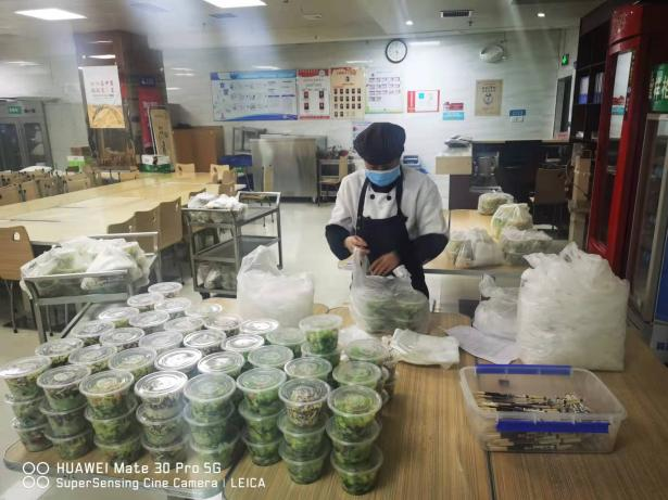 同時,醫(yī)院還成立志愿者送餐服務(wù)隊,為住院患者及陪人提供送餐服務(wù)。餐廳再次完善了送餐流程,明確了餐箱消毒及工作人員防護要求,讓住院患者享受營養(yǎng)健康又熱乎乎的飯菜。隊員中有行政后勤人員、醫(yī)生、護士,他們與餐廳密切合作,確保準(zhǔn)時送達(dá)、數(shù)量準(zhǔn)確,為了保證飯菜的溫度,他們加快速度,提高效率,送餐隊員們練就了熟練的推車技術(shù),各個都成了“推車高手”,每一餐一千多份餐食移交完畢,隊員們笑著說“腰都快直不起來了。”但他們沒有一個人叫苦叫累,都說“看到患者吃著熱乎的飯菜,我們覺得每天都是值得的!能為患者服務(wù)好,便是我們對西安抗疫做的最大貢獻。”