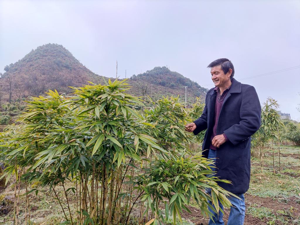 1月6日,鎮(zhèn)雄縣赤水源鎮(zhèn)銀廠村村民吳常開(kāi)介紹自家種的方竹。 新華社記者 林碧鋒 攝