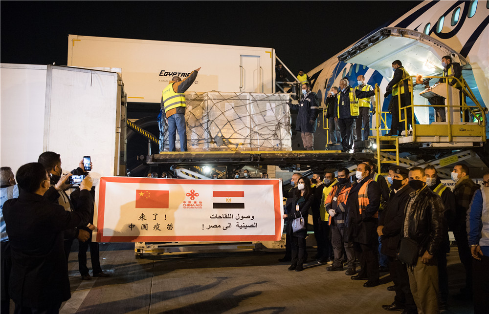 2021年2月23日,中國(guó)援助埃及的首批新冠疫苗抵達(dá)開羅國(guó)際機(jī)場(chǎng)。新華社記者 鄔惠我 攝