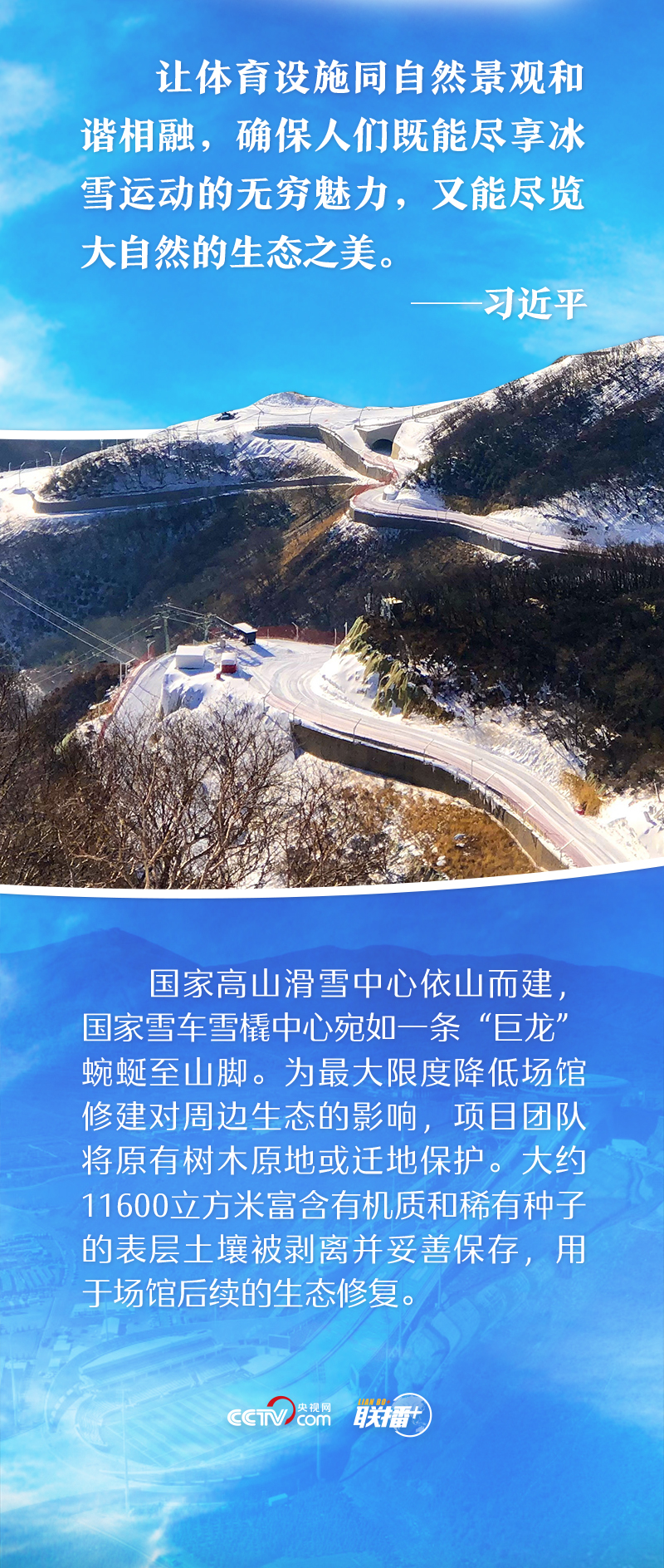 從索契到洛桑,從崇禮到北京,習(xí)近平總書(shū)記一路引領(lǐng),為辦好這場(chǎng)冬奧盛會(huì)擘畫(huà)冰雪藍(lán)圖??倳?shū)記強(qiáng)調(diào)“把綠色發(fā)展理念貫穿籌辦工作始終”“為冬奧會(huì)打下美麗中國(guó)底色”“確保人們既能盡享冰雪運(yùn)動(dòng)的無(wú)窮魅力,又能盡覽大自然的生態(tài)之美”……