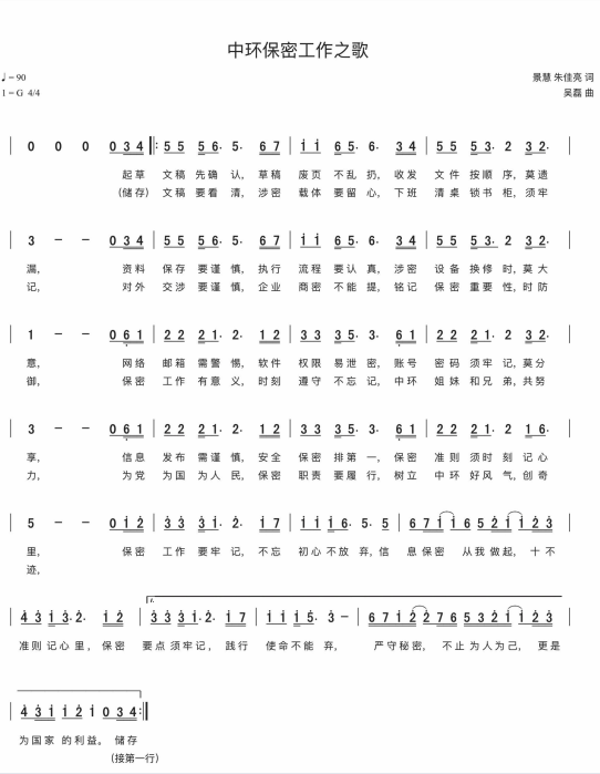 慶祝建黨百年獲獎歌曲作品選集——《中環(huán)保密工作之歌》詞曲