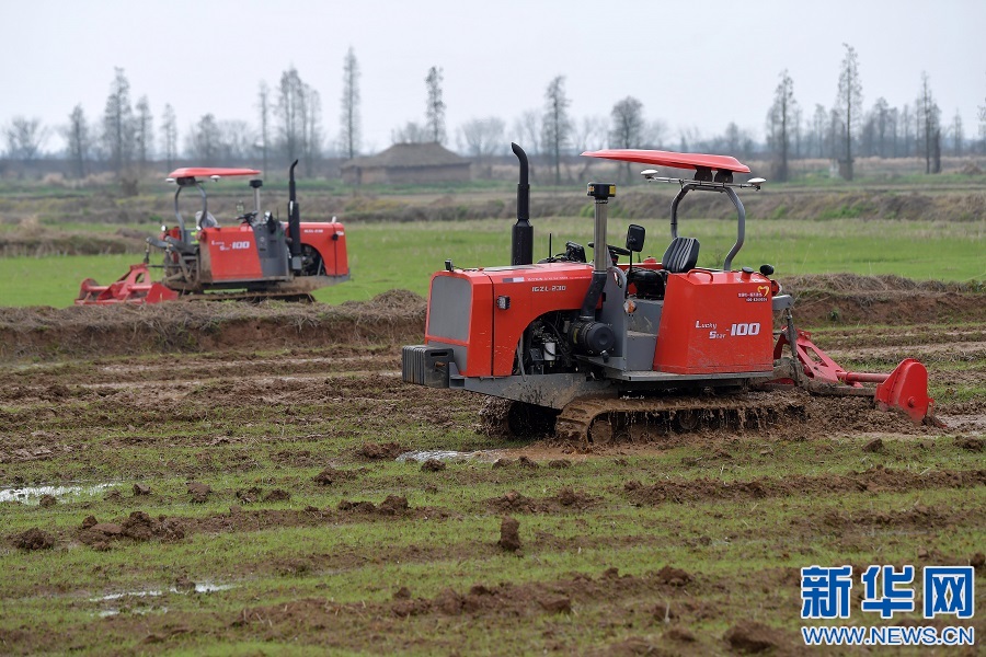 在江西省南昌縣蔣巷鎮(zhèn)大田農(nóng)社,兩臺無人旋耕機正在翻地作業(yè)。新華社記者 彭昭之攝