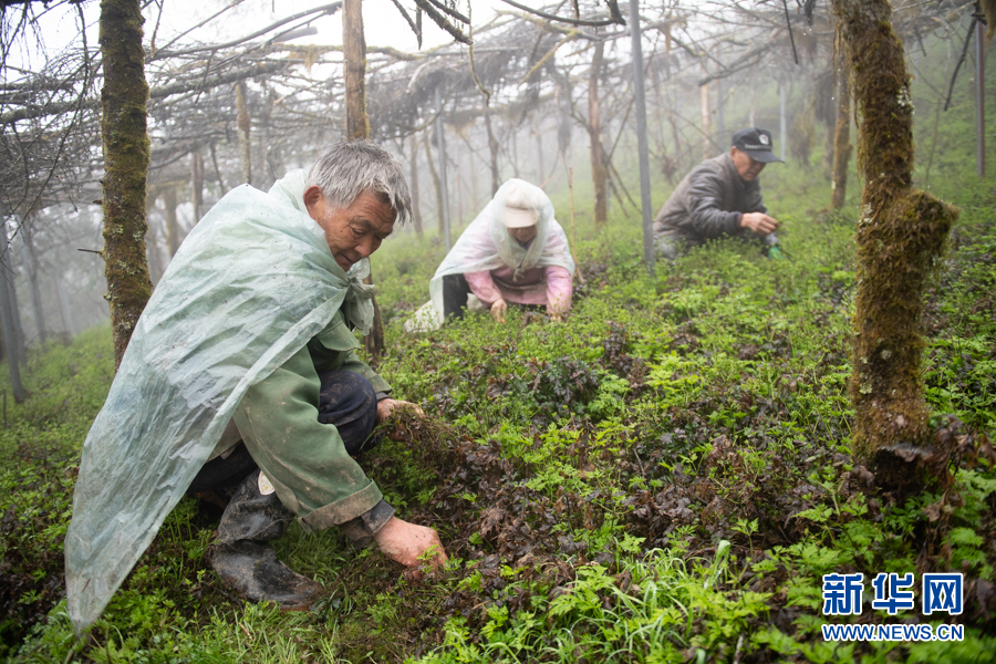 圖為村民在石柱縣冷水鎮(zhèn)玉龍村黃連種植基地內(nèi)對黃連進行管護。新華網(wǎng) 耿駿宇 攝
