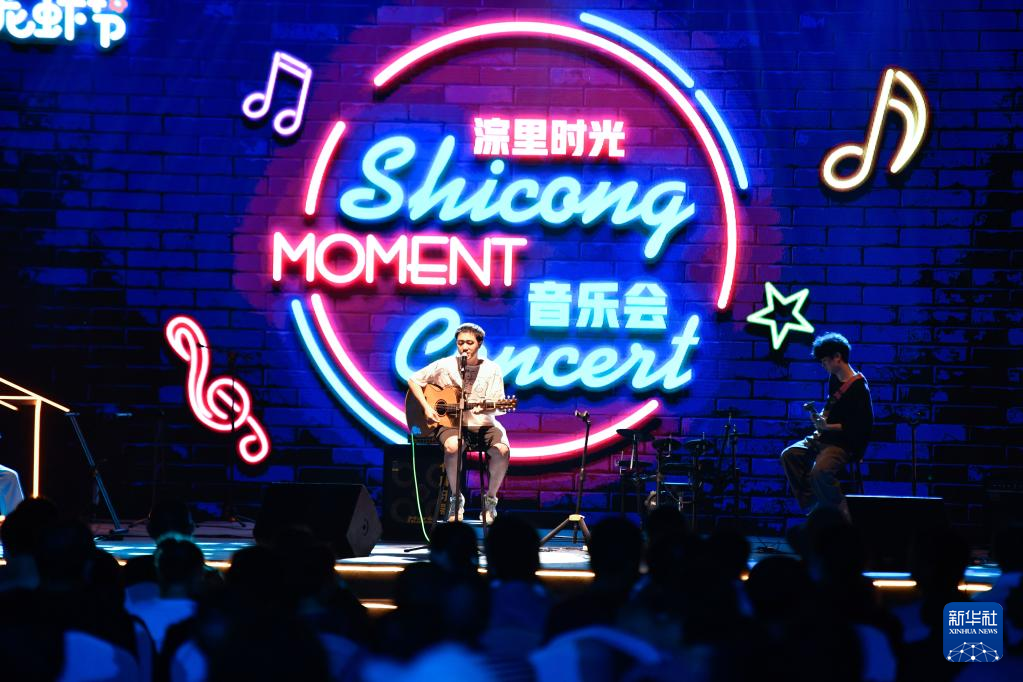 6月1日,歌手在石淙花海龍蝦節(jié)的“時光音樂會”上演唱。