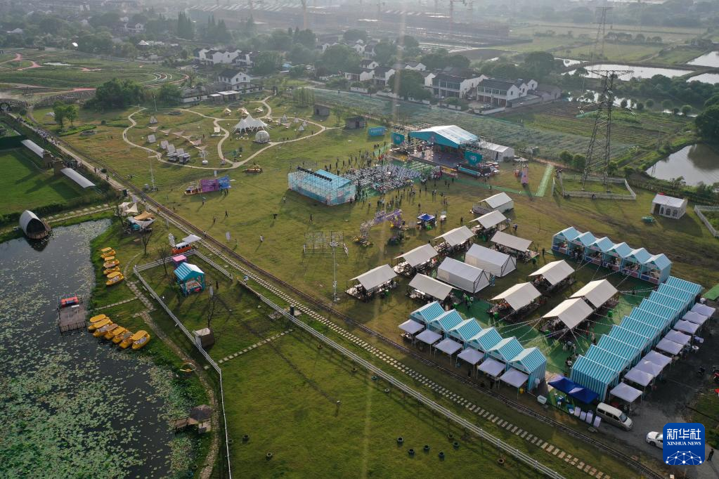 6月1日拍攝的第五屆石淙花海龍蝦節(jié)活動現(xiàn)場(無人機(jī)照片)。