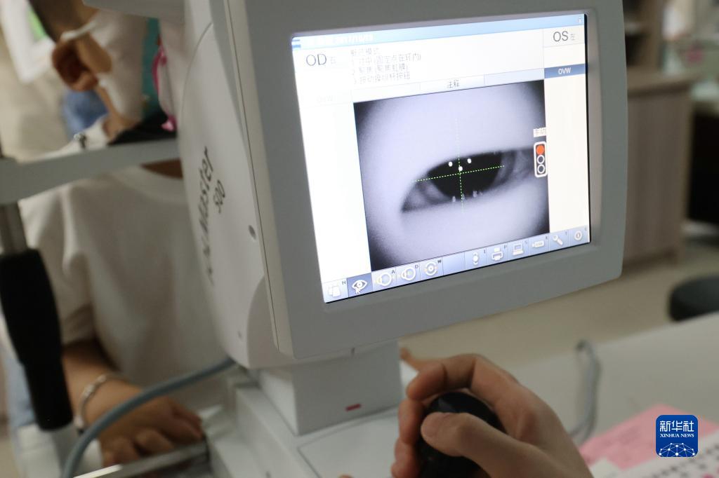 6月5日,學生在貴州省黔西市人民醫(yī)院眼科檢查視力。新華社發(fā)(范暉 攝)