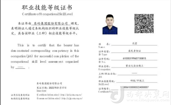 沈瑩,是東嶺冶煉公司的一名技術(shù)員,去年11月,他通過(guò)參加公司舉辦的新型學(xué)徒制培訓(xùn)班,考取了“重冶火法冶煉工”中級(jí)工職業(yè)技能等級(jí)證書(shū),不僅得到了政府1500元獎(jiǎng)勵(lì)補(bǔ)貼,還在今年3月被公司從技術(shù)員提拔為車(chē)間技術(shù)副主任助理。