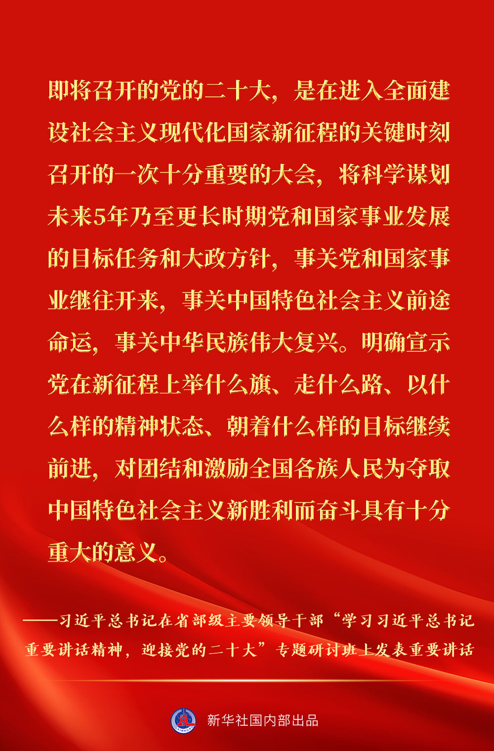 省部級主要領(lǐng)導(dǎo)干部“學(xué)習(xí)習(xí)近平總書記重要講話精神,迎接黨的二十大”專題研討班26日至27日在京舉行。中共中央總書記、國家主席、中央軍委主席習(xí)近平發(fā)表重要講話。一起來看金句速覽。