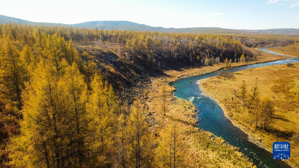 這是9月21日拍攝的阿爾山國家森林公園中不凍河的自然風(fēng)光(無人機(jī)照片)。新華社記者 彭源 攝