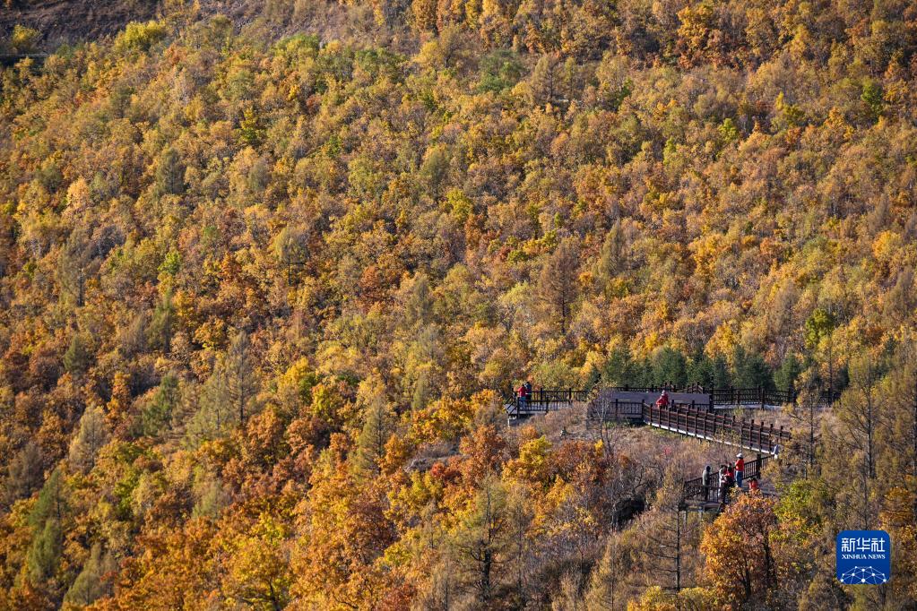 9月28日,游客在扎蘭屯市柴河鎮(zhèn)同心天池游覽。新華社記者 王澤聰 攝