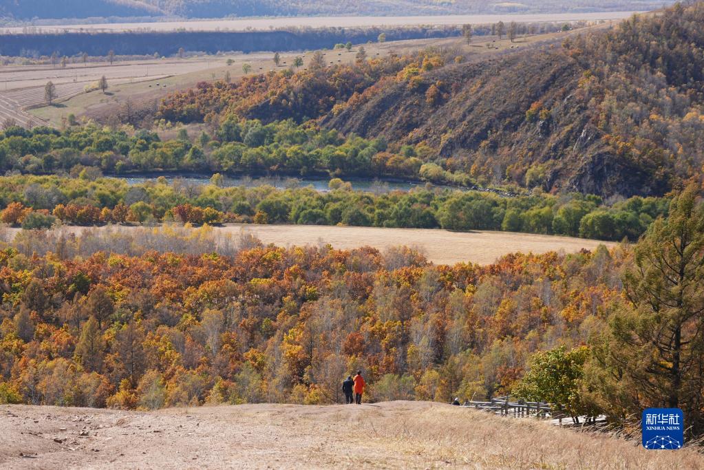 游客在扎蘭屯市柴河鎮(zhèn)十大灣欣賞秋日風(fēng)光(9月27日攝)。新華社記者 恩浩 攝