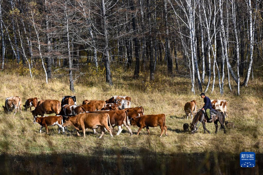 9月27日,牧民在扎蘭屯市柴河鎮(zhèn)放牧。新華社記者 王澤聰 攝