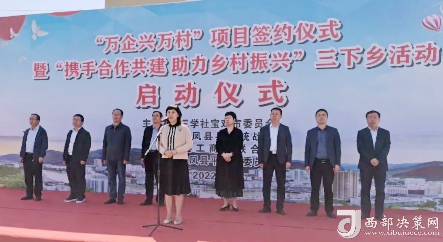 簽約儀式上,九三學(xué)社寶雞市委與鳳縣工商聯(lián)簽訂“萬企興萬村”結(jié)對幫扶框架協(xié)議。九三學(xué)社寶雞市委與鳳縣平木鎮(zhèn)人民政府簽訂“社會服務(wù)合作項目”協(xié)議。寶雞市青年企業(yè)家協(xié)會與鳳縣黃牛鋪鎮(zhèn)東河橋村、陜西鳳巢農(nóng)業(yè)科技有限公司與鳳縣鳳州鎮(zhèn)國安寺村和平木鎮(zhèn)寺河村簽訂“萬企興萬村”行動村企聯(lián)建協(xié)議。