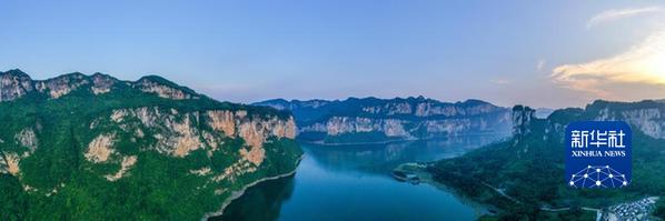 貴州省黔西市新仁苗族鄉(xiāng)化屋村烏江源百里畫廊一景(2022年5月31日攝,無人機(jī)照片)。新華社記者 歐東衢 攝