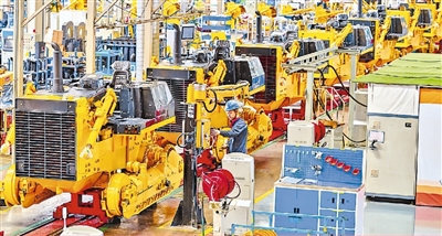 近年來,山東山推工程機(jī)械股份有限公司積極響應(yīng)“一帶一路”倡議,主要產(chǎn)品在“一帶一路”沿線均有銷售。圖為在山推總裝車間,工人正在作業(yè)。