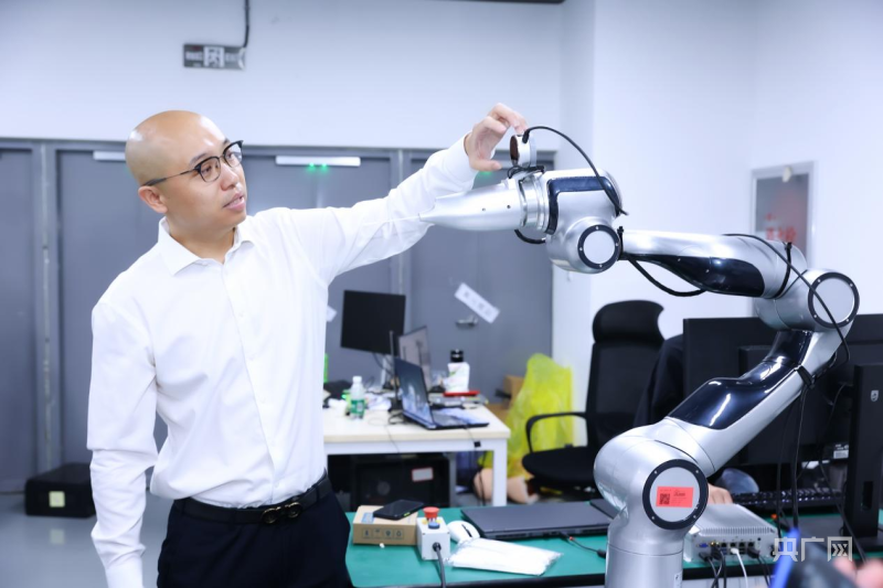 林杰介紹正在研發(fā)中的采樣機器人(央廣網(wǎng)發(fā) 王克偉 攝)