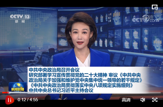 二十屆中共中央政治局10月25日召開(kāi)會(huì)議,研究部署學(xué)習(xí)宣傳貫徹黨的二十大精神,審議《中共中央政治局關(guān)于加強(qiáng)和維護(hù)黨中央集中統(tǒng)一領(lǐng)導(dǎo)的若干規(guī)定》《中共中央政治局貫徹落實(shí)中央八項(xiàng)規(guī)定實(shí)施細(xì)則》。中共中央總書(shū)記習(xí)近平主持會(huì)議。