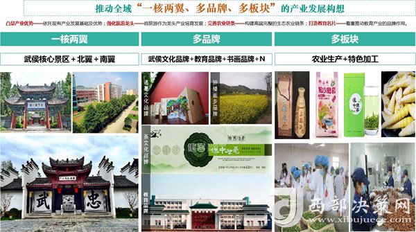 打造城鄉(xiāng)全產(chǎn)業(yè)鏈。構(gòu)建以武侯文化旅游業(yè)+教育業(yè)(勉縣一中)為特色,茶園、中藥材、干鮮果等特色種植業(yè)等生態(tài)農(nóng)業(yè)為基礎(chǔ),農(nóng)副產(chǎn)品生產(chǎn)加工貿(mào)易為輔助,鄉(xiāng)村休閑旅游為互補(bǔ)的城鄉(xiāng)全產(chǎn)業(yè)鏈體系。