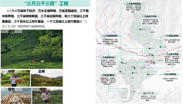 做強(qiáng)一產(chǎn),做優(yōu)特色農(nóng)業(yè)。大力推進(jìn)“三萬三千三百”(萬畝林下經(jīng)濟(jì)、萬頭生豬養(yǎng)殖、萬畝茶園建設(shè);三千箱中蜂養(yǎng)殖、三千畝辣椒栽植、三千畝花椒種植;三個(gè)百畝以上林果基地、三個(gè)百頭以上肉?;?、一個(gè)三百畝以上雷竹基地)工程及“一村一品”工程,形成特色農(nóng)業(yè)產(chǎn)業(yè)格局。