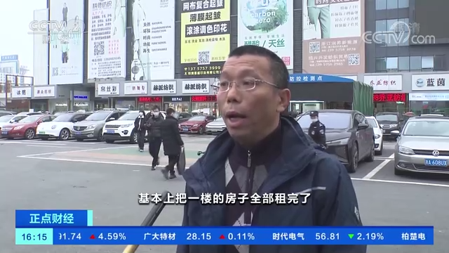浙江中國(guó)輕紡城集團(tuán)東市場(chǎng)分公司負(fù)責(zé)人 孟偉東:三天以前,下一年的房子大概還有三分之一沒(méi)有出租。兩天時(shí)間,現(xiàn)在基本上把一樓的房子全部租完了。